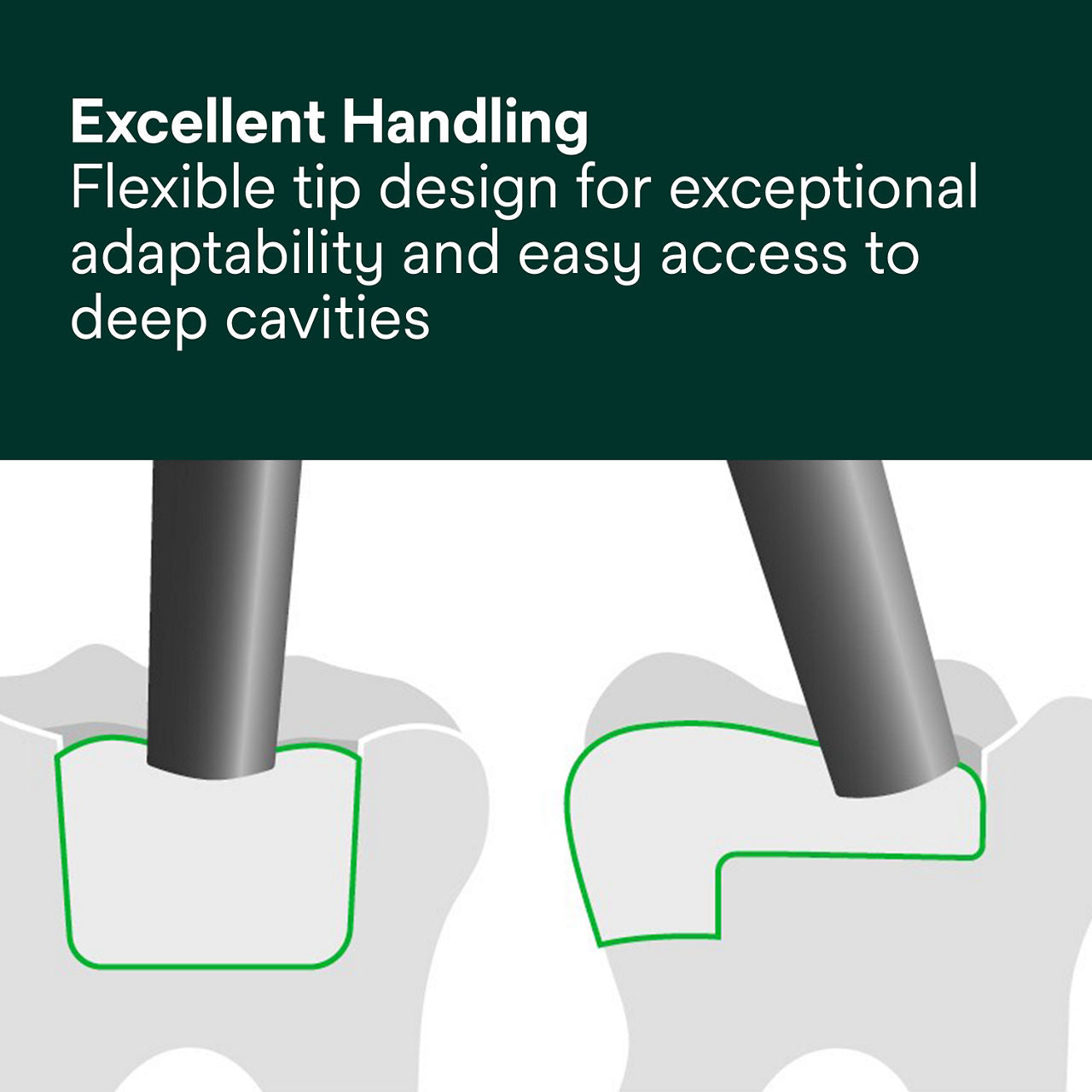 - Fast and easy one-step, bulk fill composite placement up to 5mm with no capping layer needed.