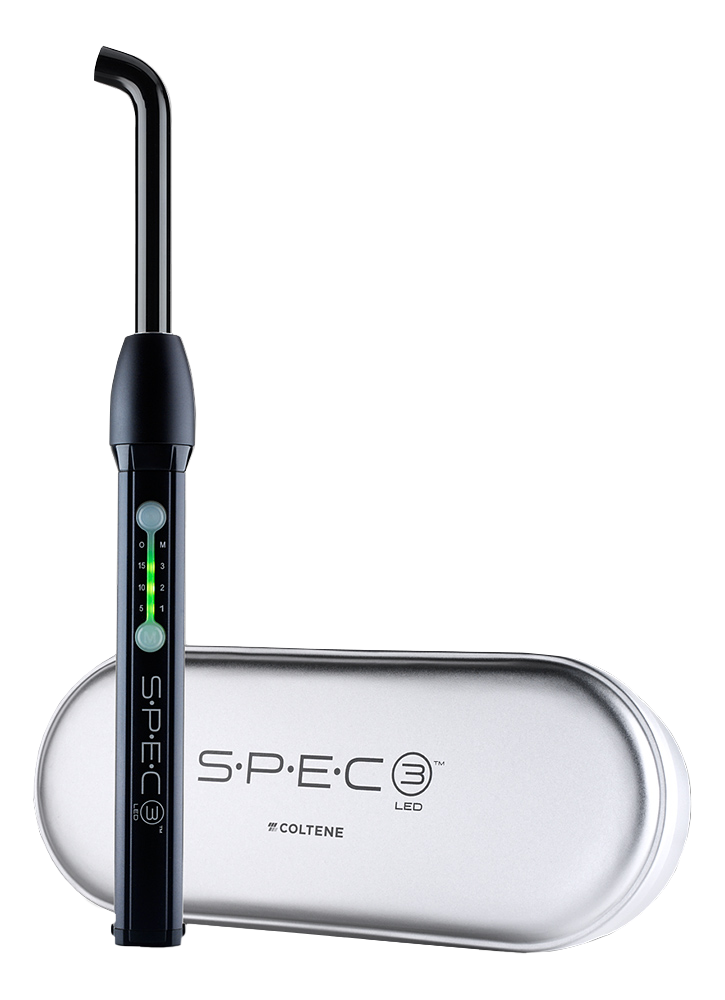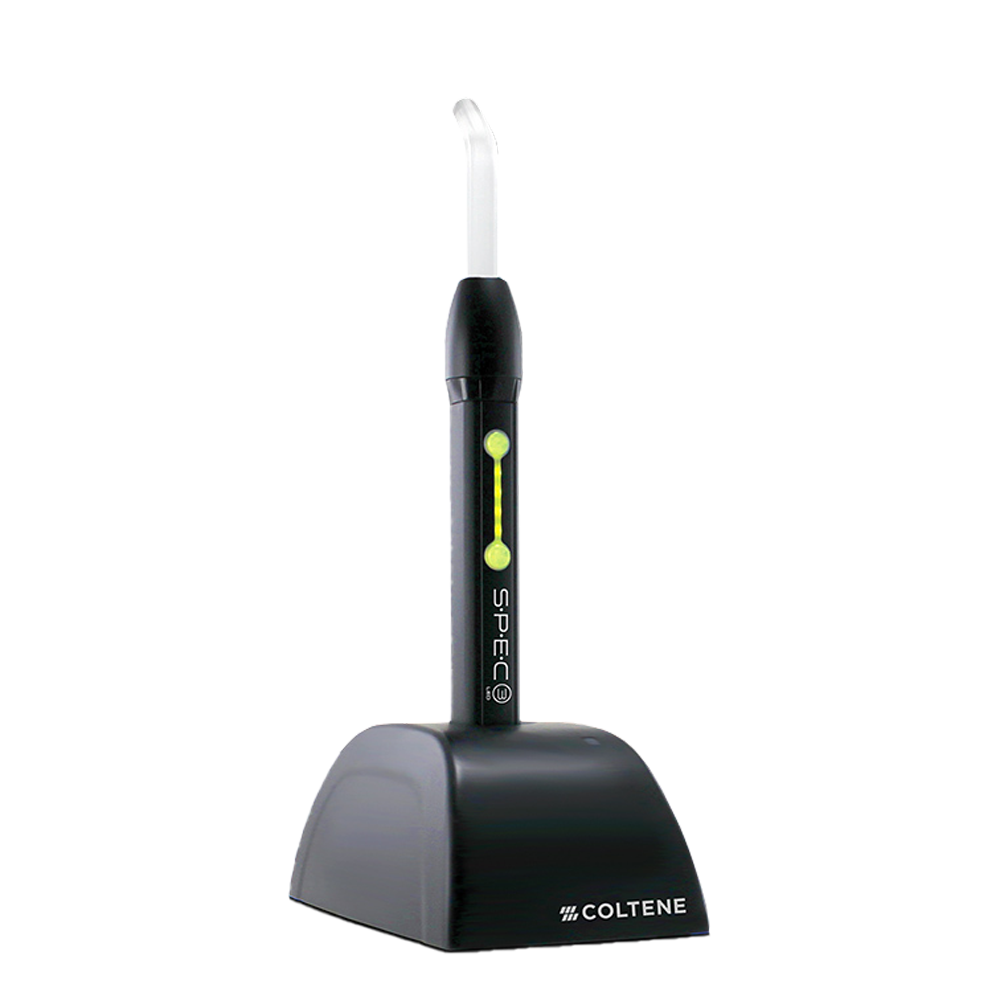 The S.P.E.C. 3 curing light defines performance without compromise. Chair time can be effectively reduced due to rapid and deep polymerization on various light cured materials. The sealed aluminum body ensures quick and easy disinfection between patients. The powerful Lithium Polymer Battery offers enough storage capacity to perform over 300 ten-second cures between charges. The Coltene S.P.E.C. 3 features multiple curing modes for maximum functionality in any clinical situation.