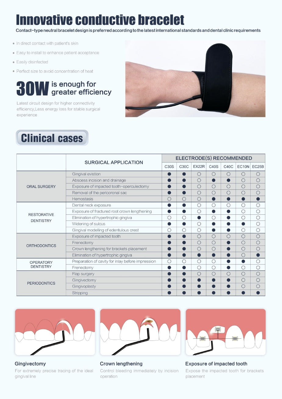 - Simple-to-mount electrodes are insulated by a sheath,only the active part is contact with soft tissue, Safe enough to avoid injury to non-surgical area tissue.