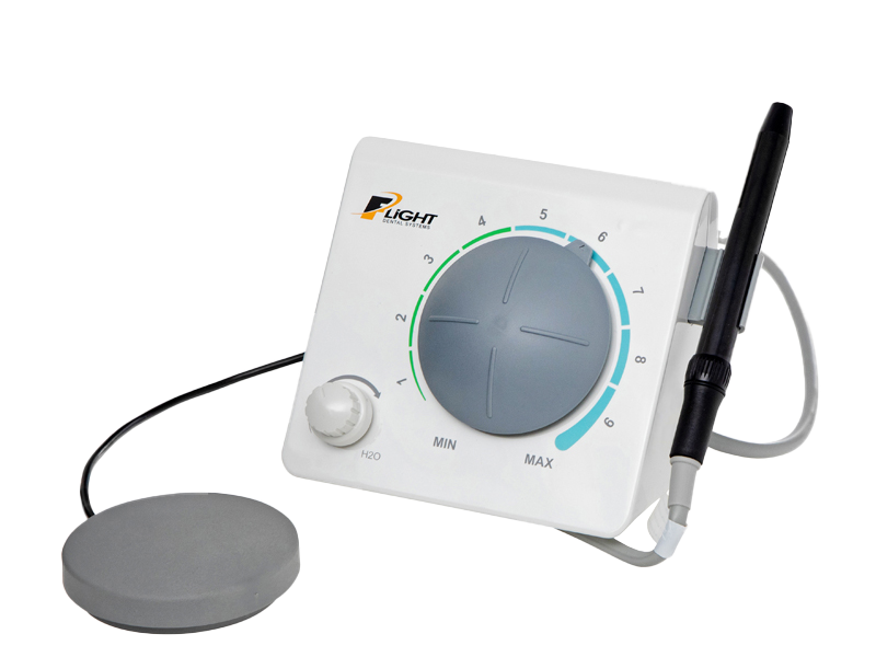 The Flight Tabletop Ultrasonic Scaler provides a higher maximum power setting for patients with heavy calculus. The jump from low-power to high-power can easily be controlled by decrease in foot-pressure. An easy unscrew of the hand piece sheath will pop it into the autoclave. No down time due to the convenience of extra sheaths, therefore you can keep on scaling while one sheath is in the oven.