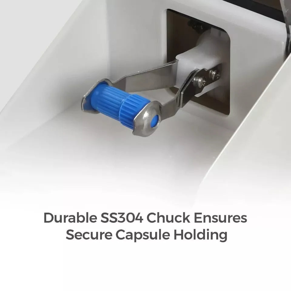 Durability is a key feature, exemplified by the SS304 chuck that securely holds capsules in place during mixing. This design prevents any bending or breakage, ensuring the longevity of the device and maintaining its consistent performance over time.