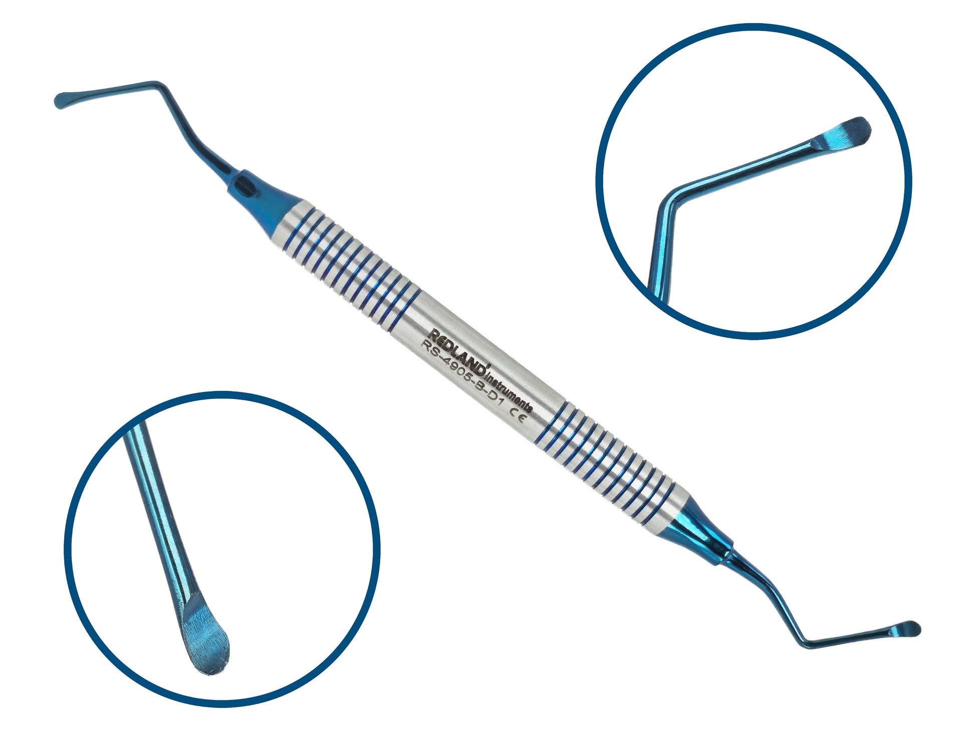 Surgical curette used for curettage, cyst removal and debridement of tooth socket.