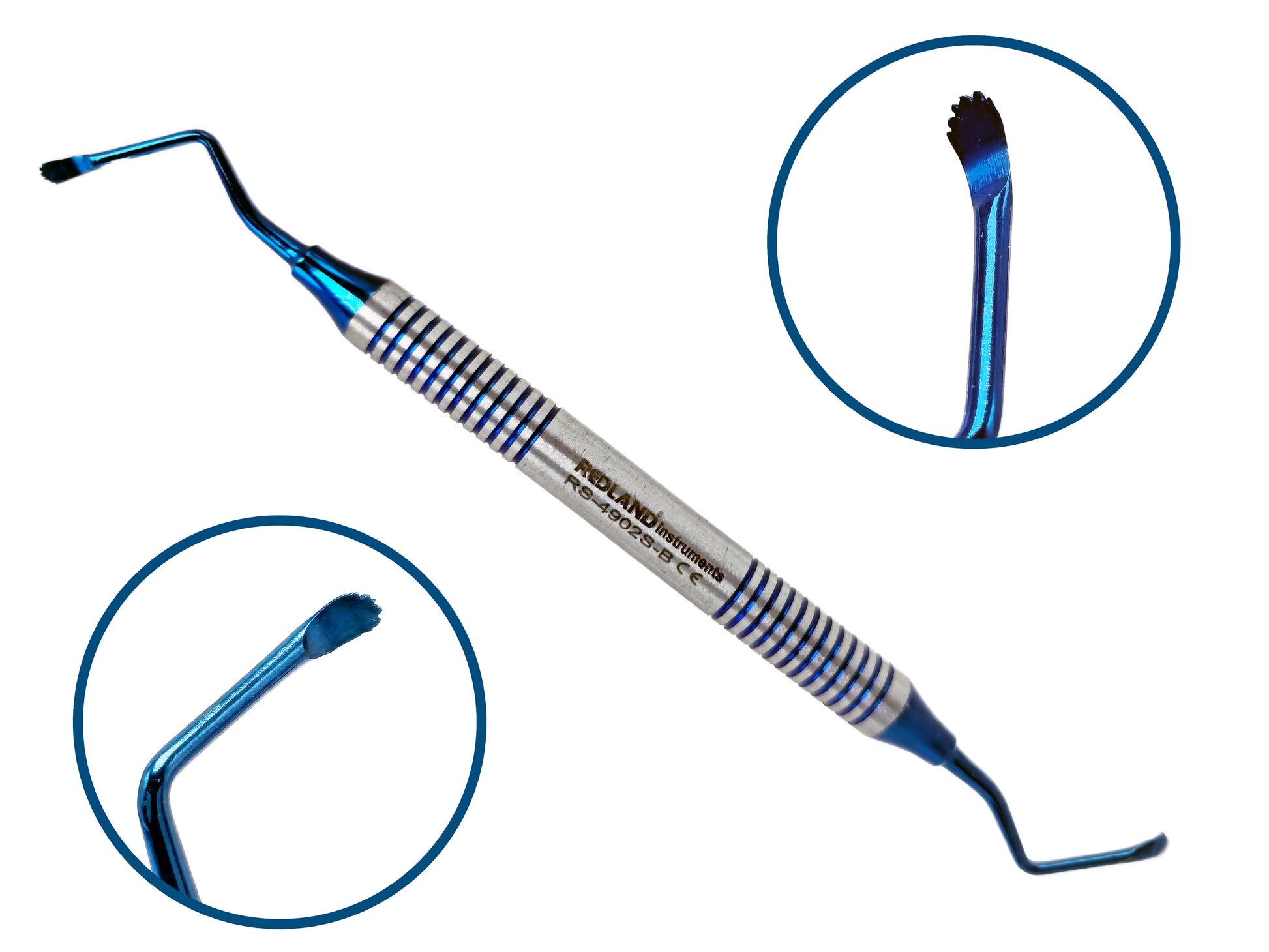 Surgical curette used for curettage, cyst removal and debridement of tooth socket.
