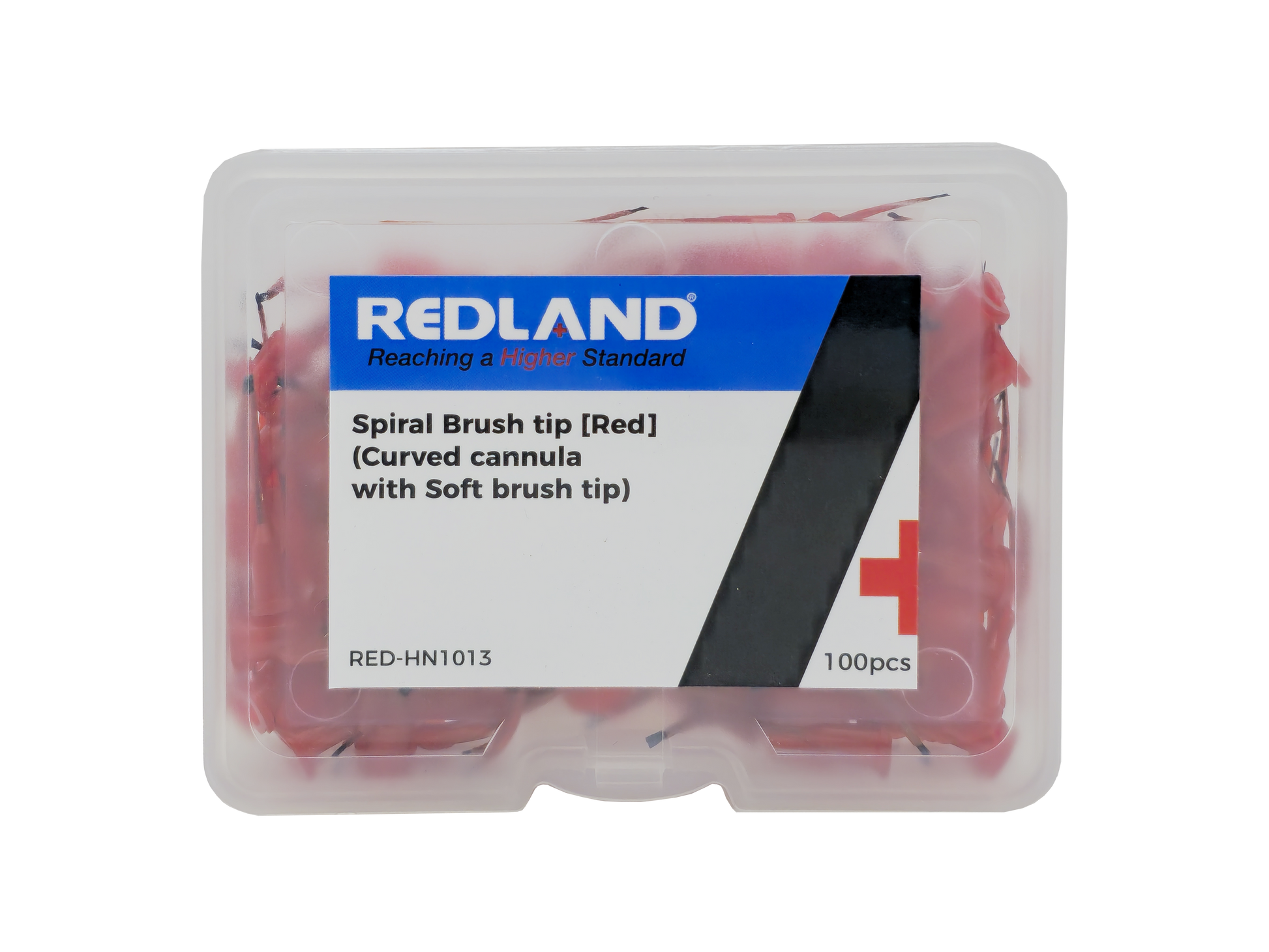 REDLAND Spiralbrush Tip [RED] (Curved Cannula with Soft Brush Tip) 100/Pk